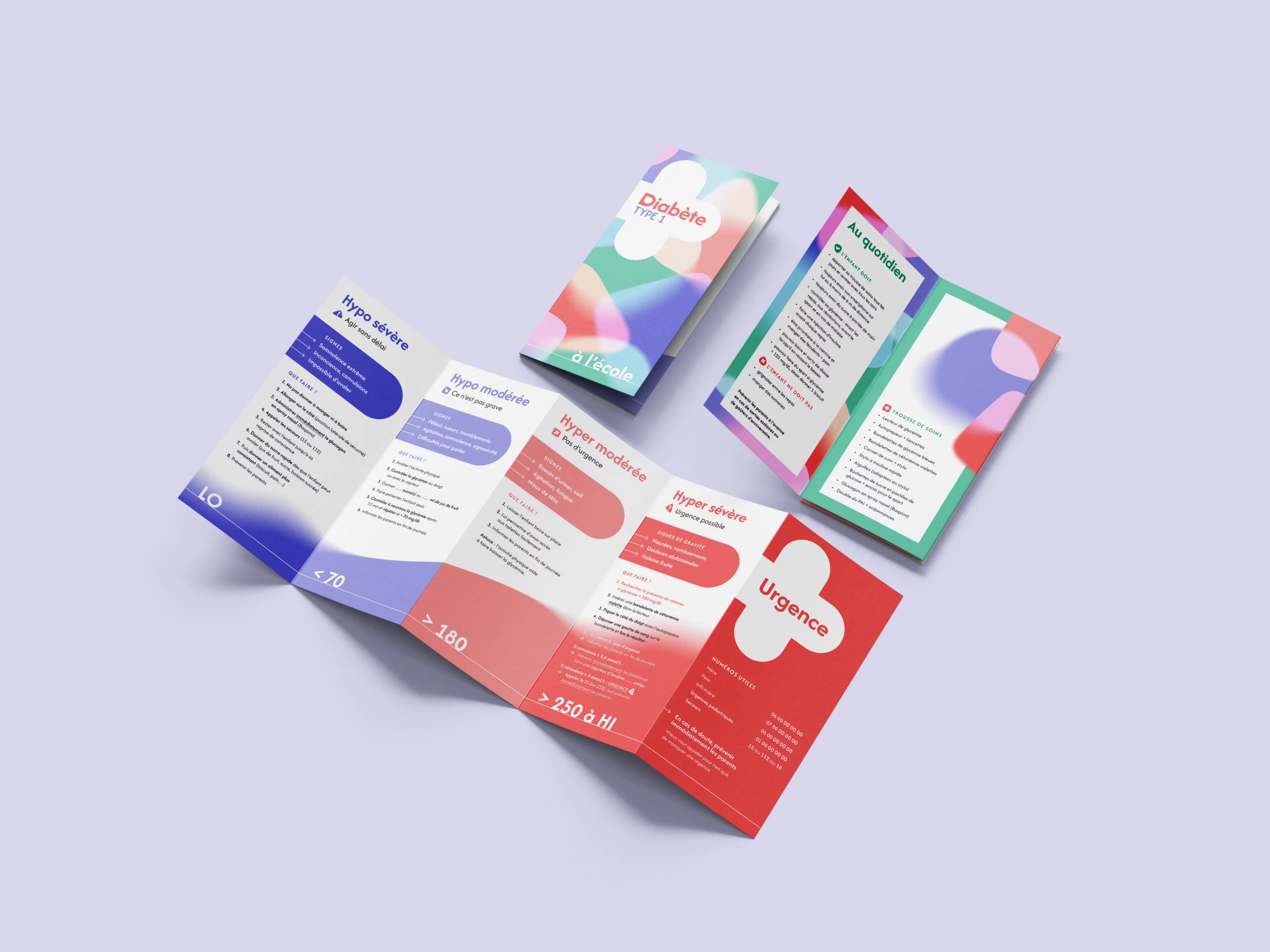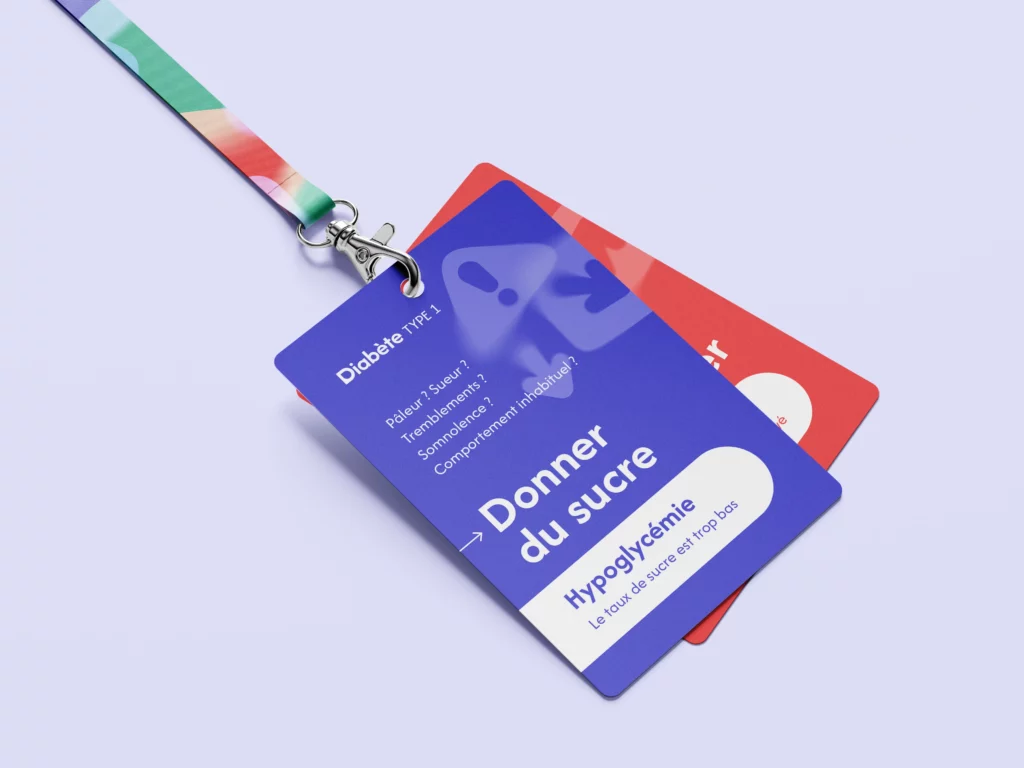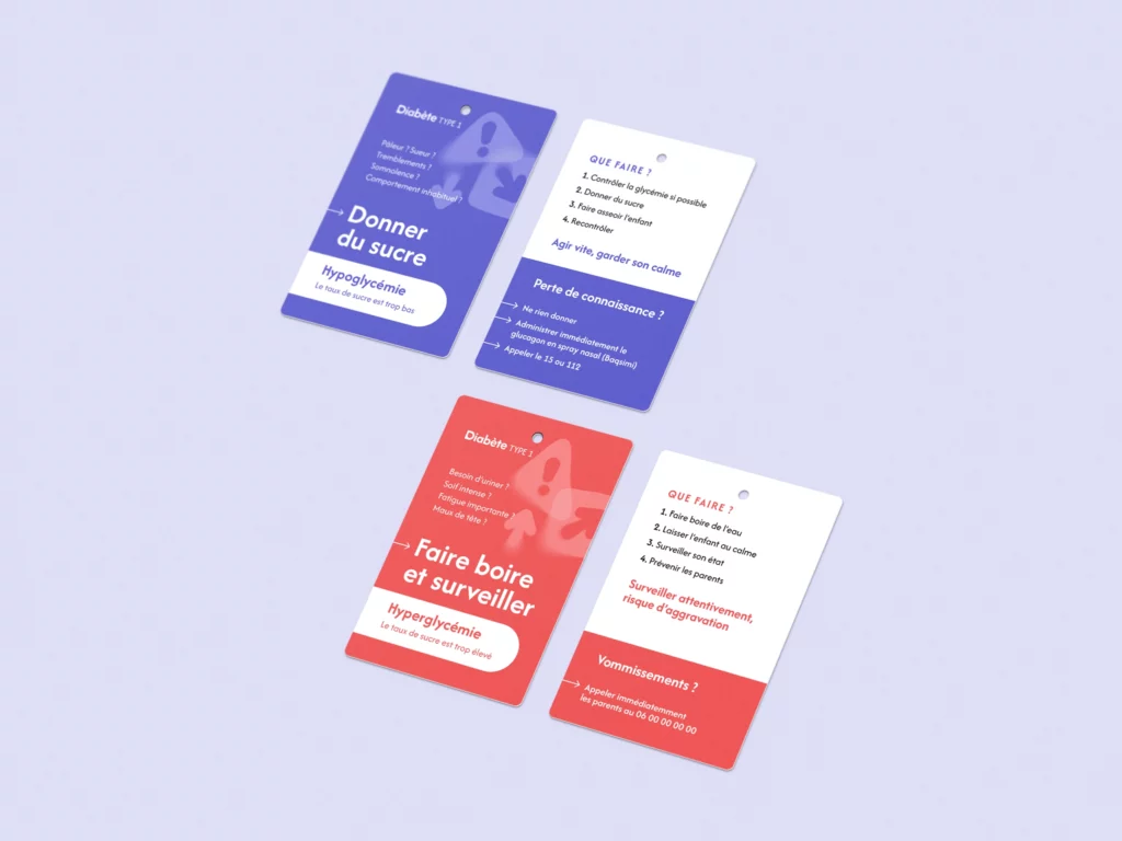Les cartes hypo et hyper condensent les situations critiques en formats courts, conçus pour être lus et compris en quelques secondes. Les fiches pratiques prolongent ce travail en ciblant des moments spécifiques du quotidien, souvent sources d’incertitude. Les icônes jouent un rôle de repère visuel, facilitant l’identification des symptômes et des actions à mener, même en situation de stress.